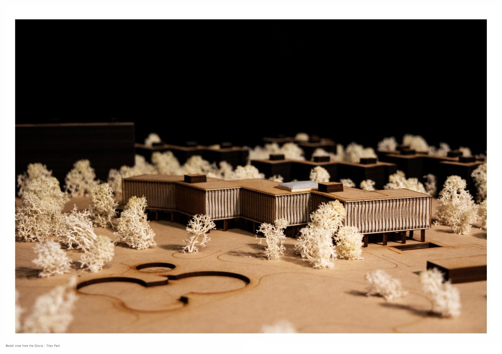 Many demands of a community segregated from the urban network and in itself segregated by the impossibility of interactions will be satisfied by a community center containing a plurality of open spaces, social and cultural activities, and well-defined places for leisure and social interaction, becoming the new hearth of local life. Situated within the green of the park, it takes over the enabling role of the now deserted sporting facilities, with the open ground floor animating the now underutilized public outdoor space. It revives not only current local activity and relationships, but it most importantly invigorates the still enduring idea of the park as a part of local identity.