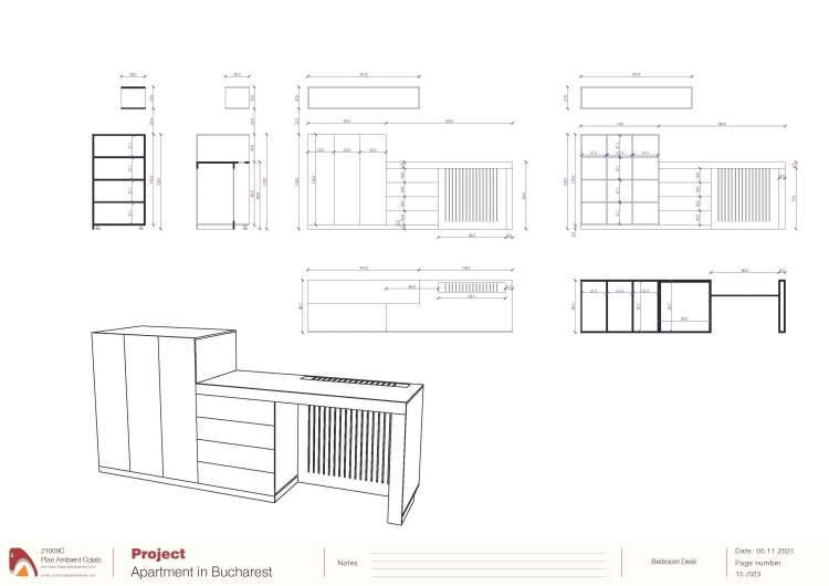 Collaboration project with Plan Ambient Studio. Custom furniture design and technical drawings.